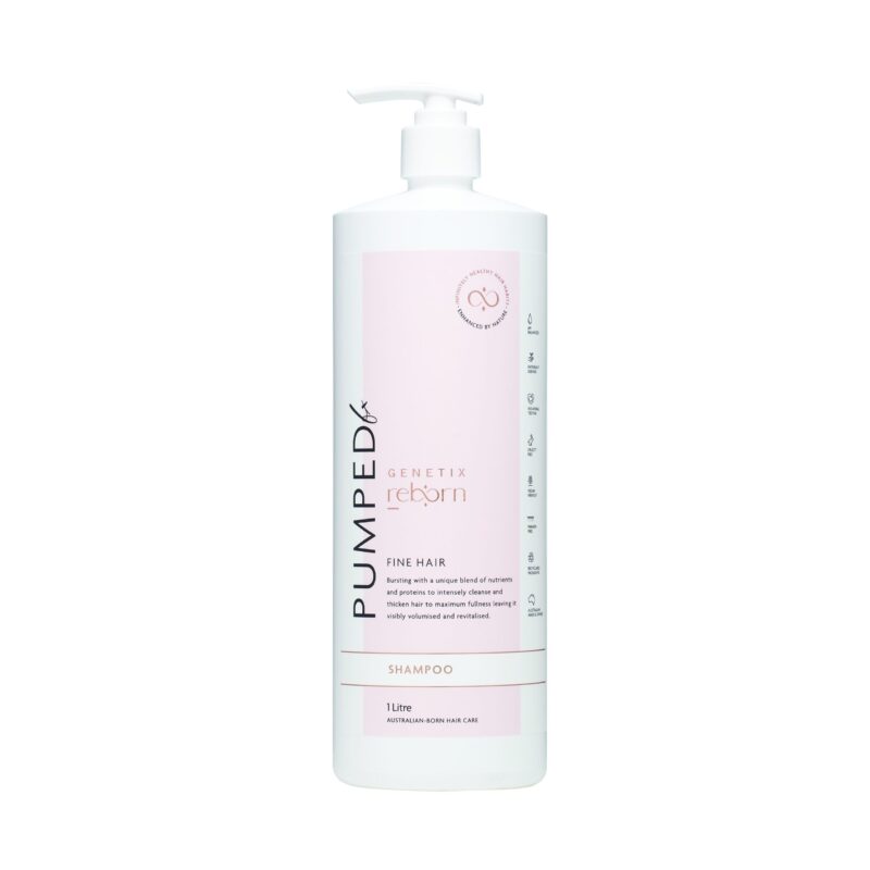 Body boosting and ultra-cleansing Genetix Reborn PUMPED FX Shampoo will deeply cleanse normal, fine or limp hair types.  It is a nourishing shampoo that will balance moisture levels for hair that feels silky and smooth and looks lifted and more full of life than ever.