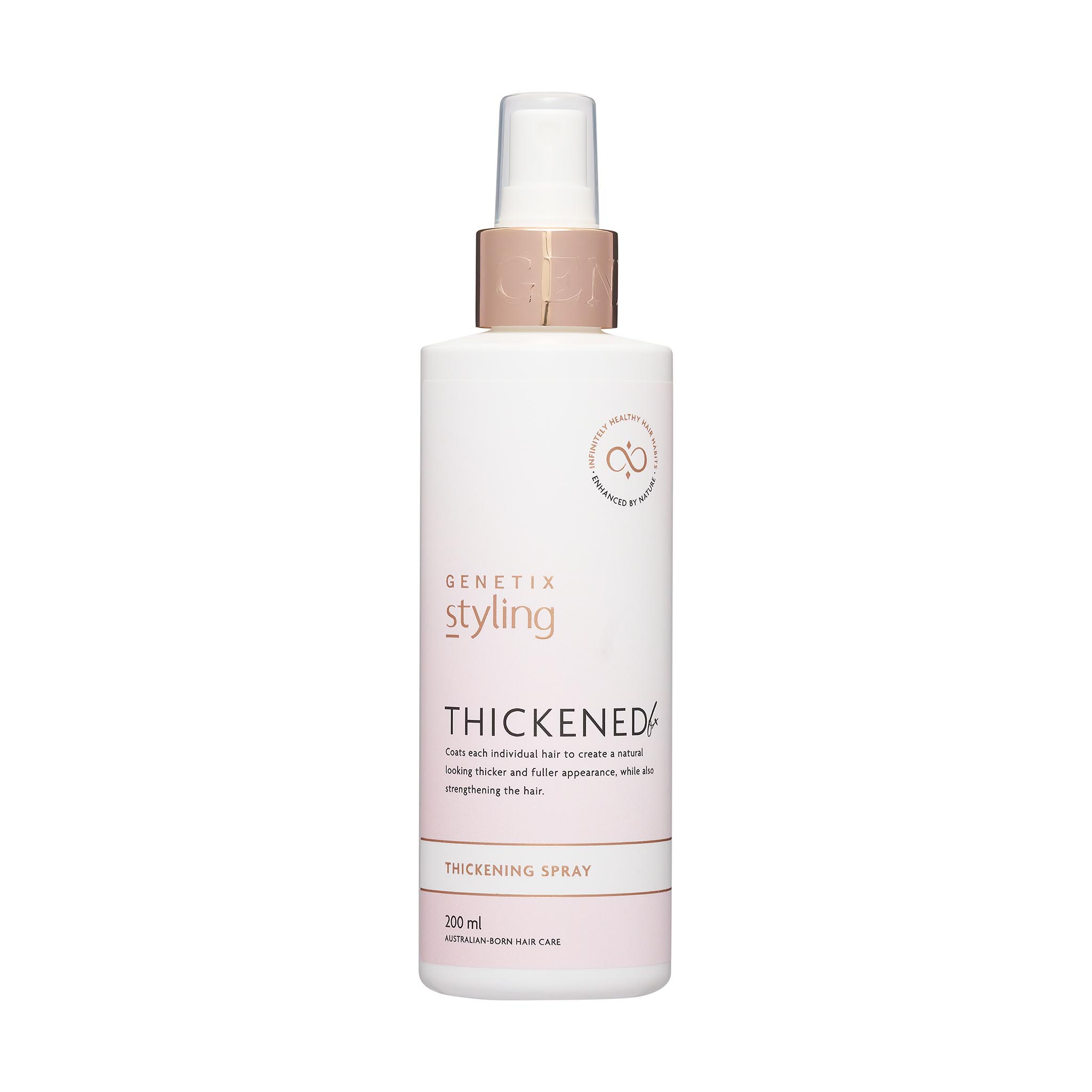Thickened FX cleverly coats each individual hair to make it not only thicker, but stronger as well. It gives instant visible thickness and leaves the hair looking naturally fuller, shinier and healthier.